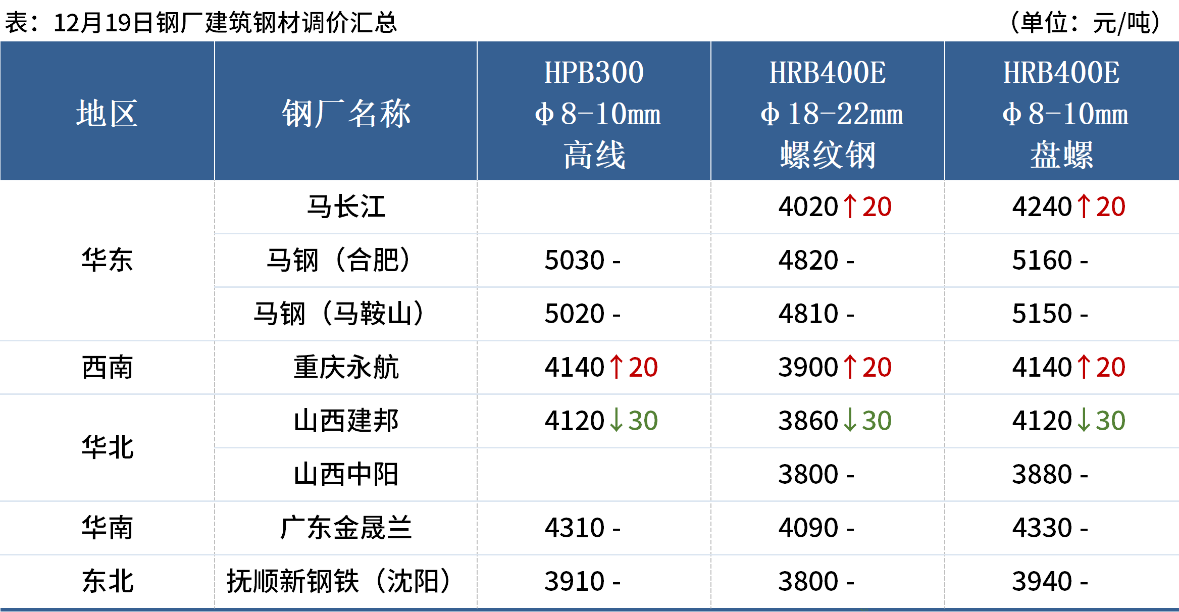 12月19日,全國(guó)累計(jì)17家鋼廠發(fā)布調(diào)價(jià)信息,整體調(diào)幅在0-30元/噸。